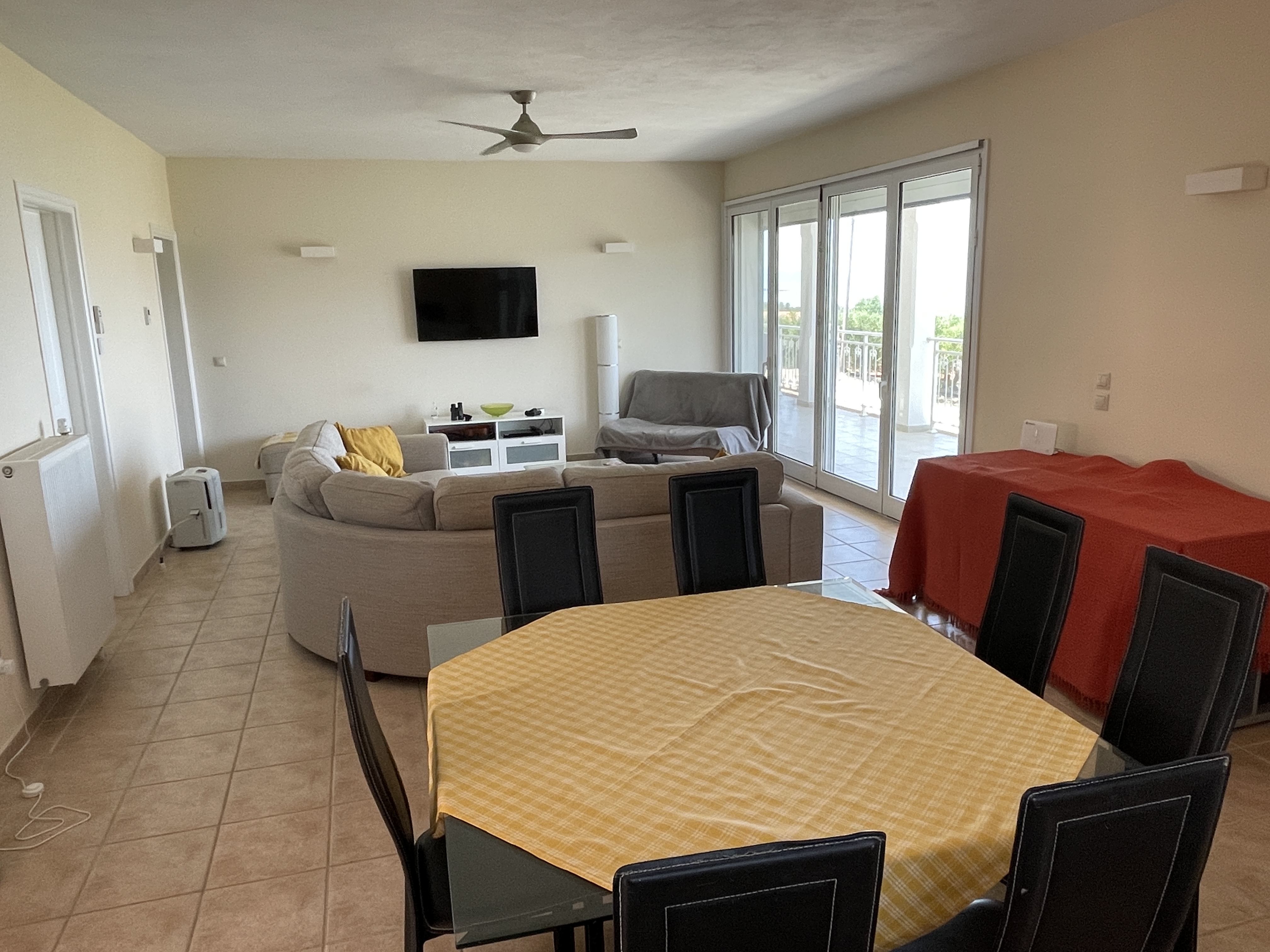 The Sitting Room is a large, bright room that faces the beautiful view of Agios Stefanos beach and in the distance, Albania.